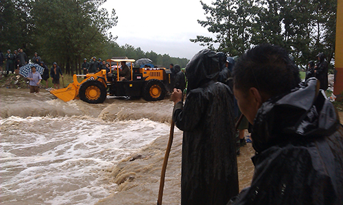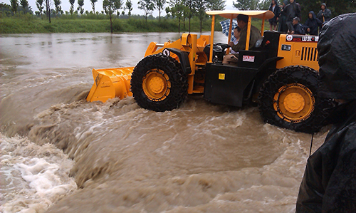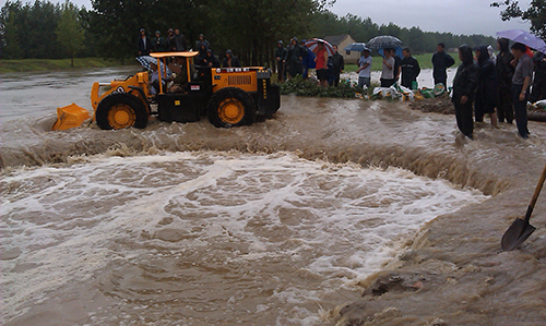 銀澤小霸王立即投入到抗洪救災(zāi)之中,主要負(fù)責(zé)物資的運(yùn)輸、修復(fù)受損路段,以及鏟裝砂石料裝入運(yùn)輸車(chē)輛等工作。在大坡度的防洪大堤面前、面對(duì)著濤濤江水,裝載機(jī)沒(méi)有打怵、機(jī)手更沒(méi)有害怕;銀澤小霸王將一條條裝滿砂石的防洪編織袋投入滾滾的江水之中,成為抗洪搶險(xiǎn)中的金剛!